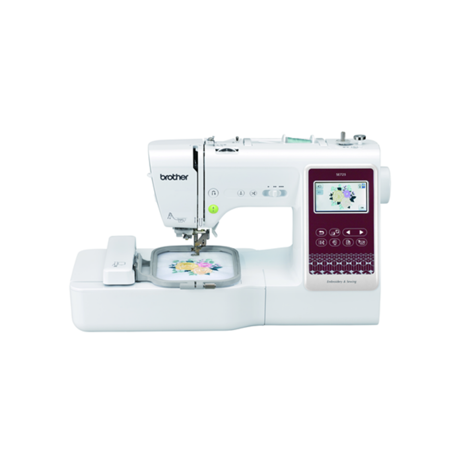 Máquina híbrida de costura y bordado, con 103 puntadas, 135 diseños integrados y conectividad inalámbrica ideal para creatividad y personalización.