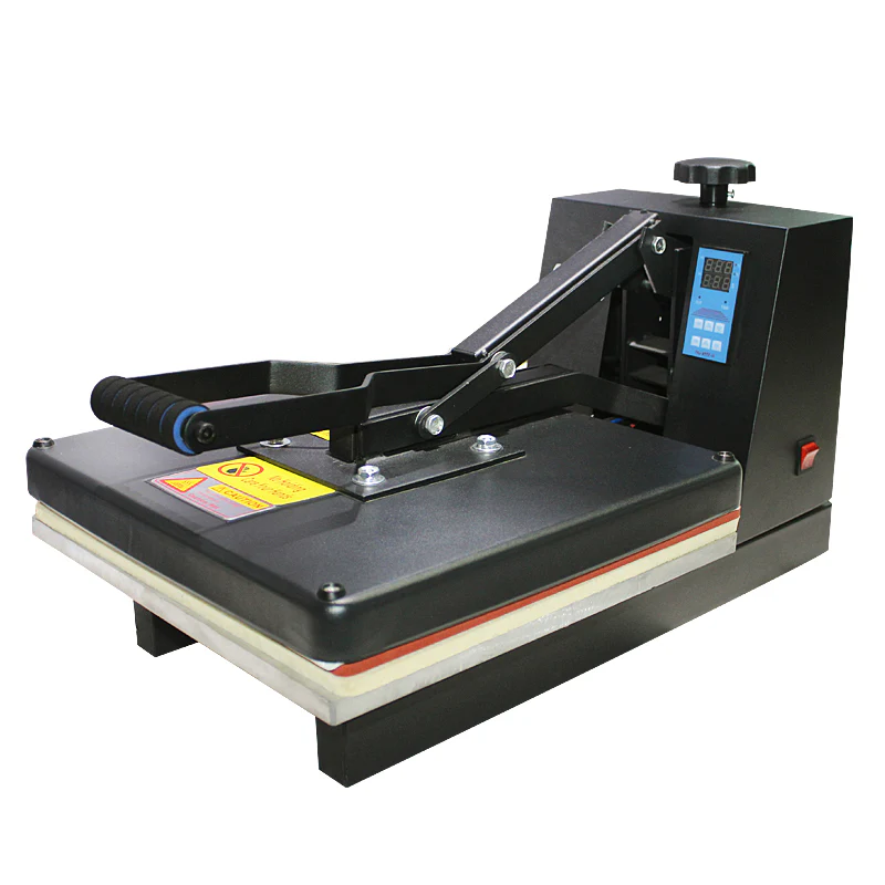 Prensa térmica 38×38 cm de bandeja fija, ideal para camisetas y textiles medianos.